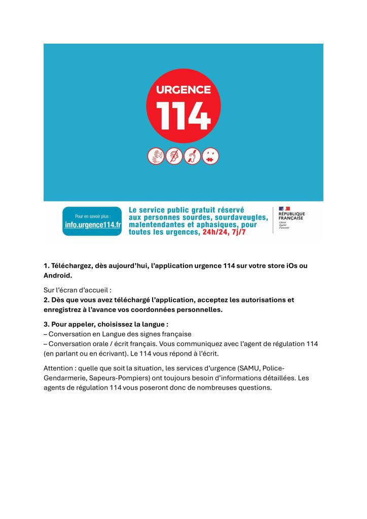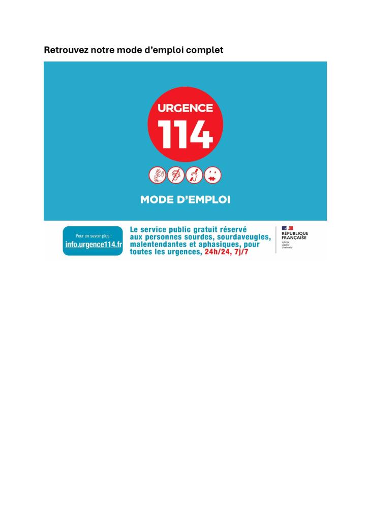 Il y a un site incontournable : https://www.info.urgence114.fr/mode-emploi/