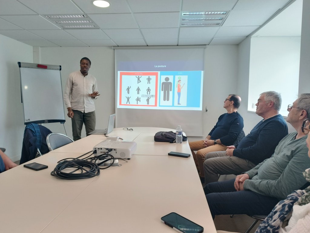 Notre formateur, Malick, a été d’une aide précieuse tout au long de cette formation. Grâce à ses conseils pointus sur la posture, le regard, et la gestuelle, nous avons appris à mieux nous exprimer, malgré les difficultés liées à l’aphasie. Sa bienveillance et son expertise ont créé un environnement où nous avons osé essayer, même lorsque cela semblait compliqué.