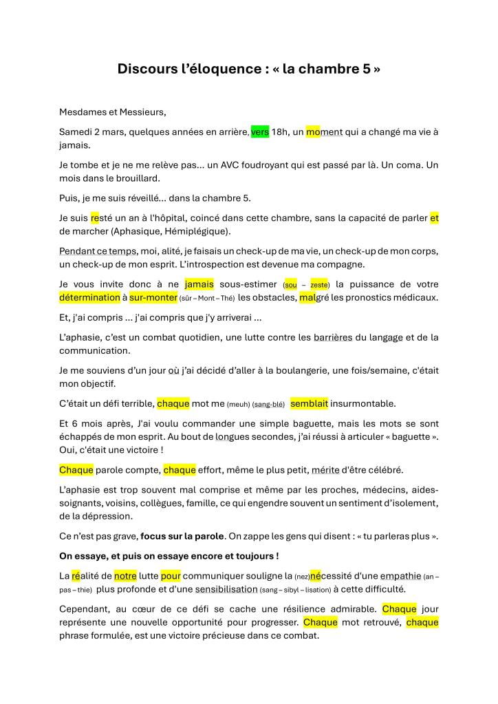 Être aphasique rend la prise de parole en public particulièrement difficile. Cependant, cette formation nous a permis de dépasser nos appréhensions. Chaque essai, chaque discours, même imparfait, a été une victoire en soi. Nous avons découvert que la pratique et le soutien mutuel sont essentiels pour avancer dans notre parcours.