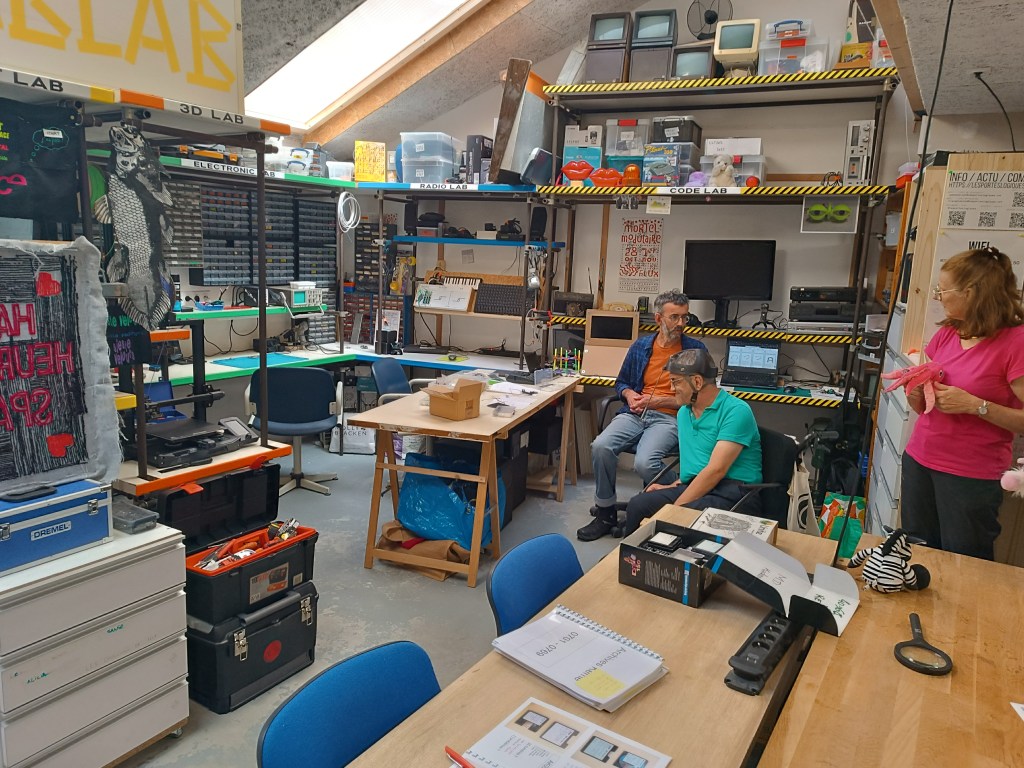 Après notre passionnante discussion, nous avons eu l’occasion de visiter le Fablab, où Bernard et sa femme ont fait des commentaires très pertinents sur cette expérience immersive. Ce lieu est tout simplement impressionnant ! Les possibilités de création et d’innovation qu’il offre sont immenses, et nous avons été émerveillés par les projets en cours.